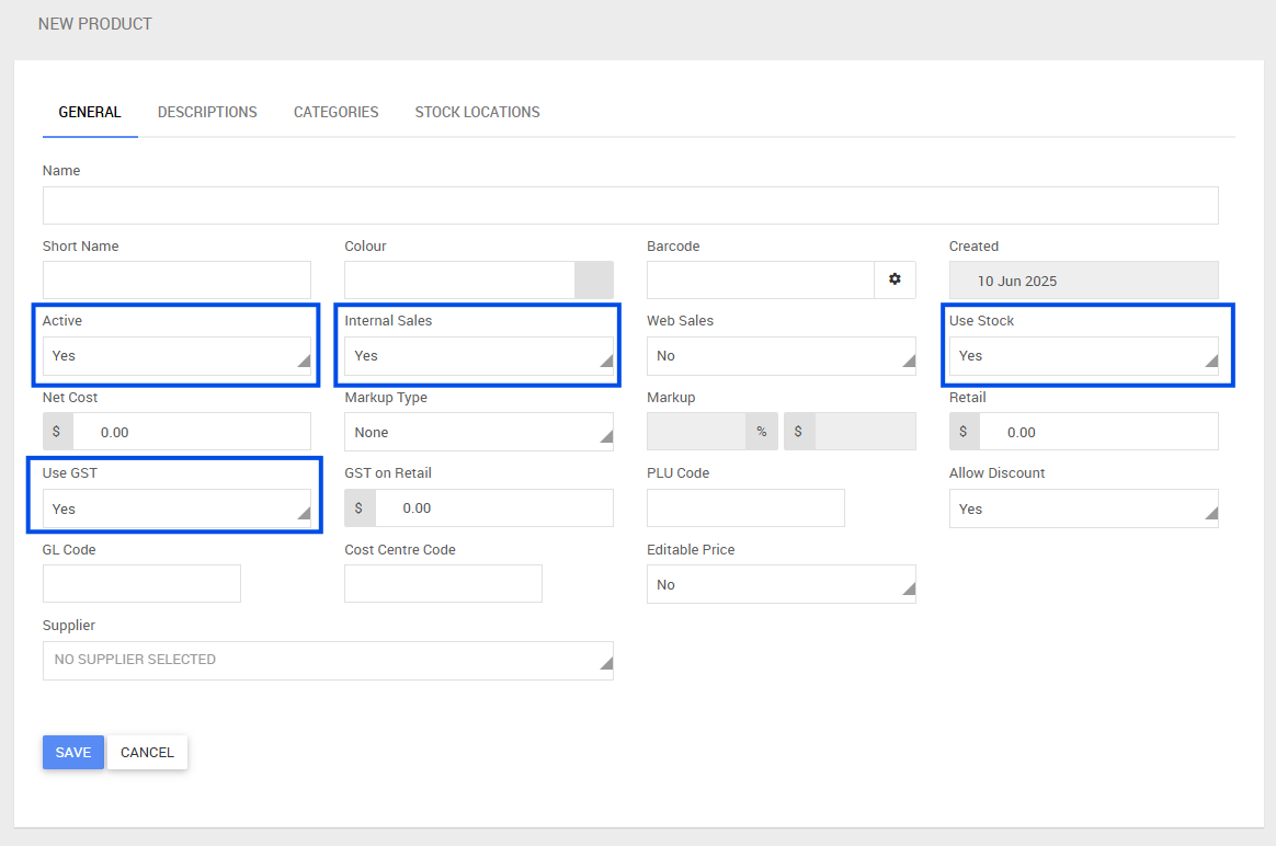 Creating new POS Products in Bookeasy is now even easier! The below fields will now be selected by default