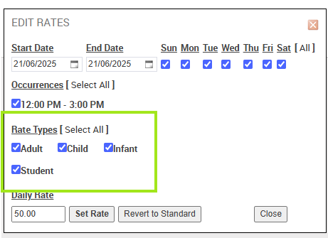 Can 'Select All' rate types when updating Daily Rates via Bookeasy Tours / Tour Manager